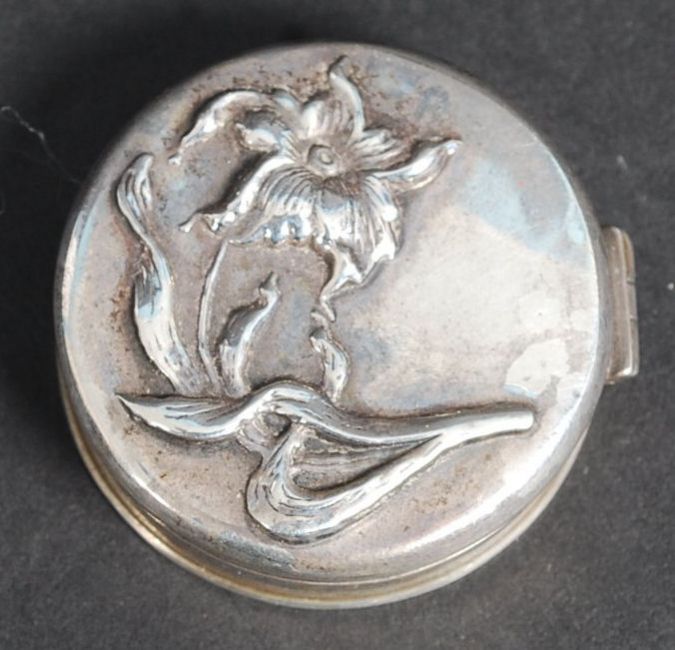 A 20th century silver 925 marked ladies pill box cast in relief with daffodils to the lid. Measures: 16g