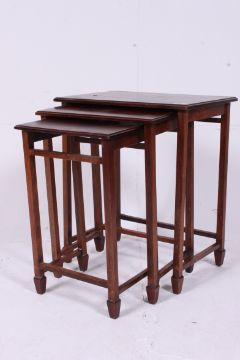 An Edwardian mahogany inlaid nest of tables. Raised on squared legs united by stretchers having graduating tops above. Measures: 57cms x 49cms x 33cms.