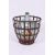 A vintage early 20th century large green glass acid carboy bottle complete with the strapped iron cage. Measures: 53cms H x 58cms across.