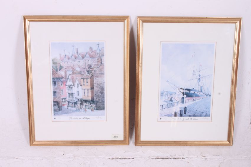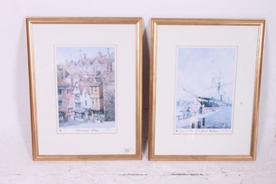 ANTHONY V PACE - Two limited edition coloured prints of Bristol Christmas Steps 371/1000 and The SS Great Britain 407/1000 both being framed and glazed. Both signed in Pencil