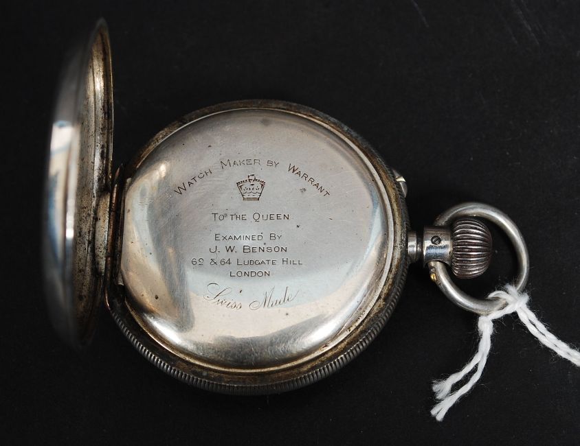 A Benson silver cased pocket watch with subsidiary seconds dial to the enamel face. hallmarks to inside of case. 94.9g gw