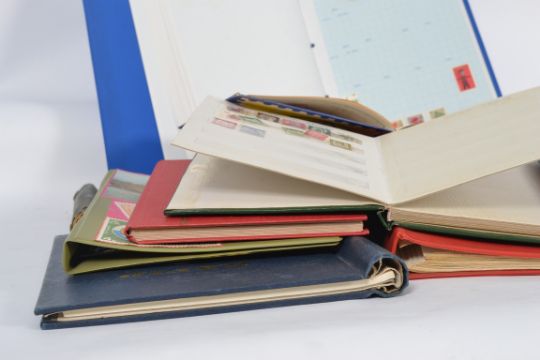 STAMPS; A collection of 10x vintage stamp albums, each containing a quantity of stamps