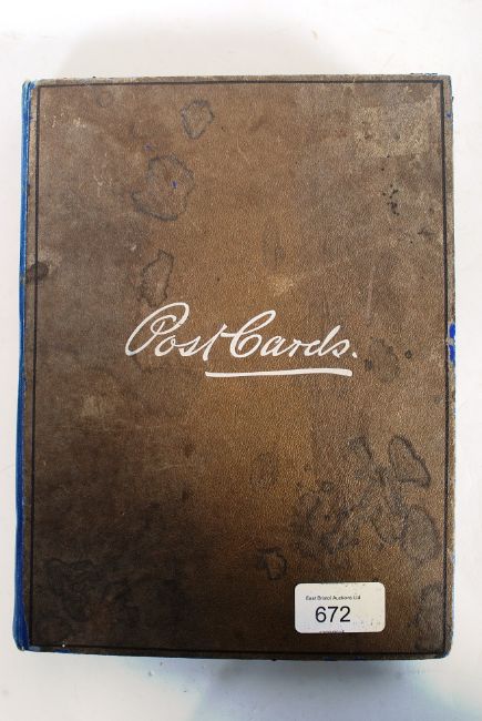 Postcards; An old Edwardian postcard album with over 100 postcards, many view type, real photos and some silks.