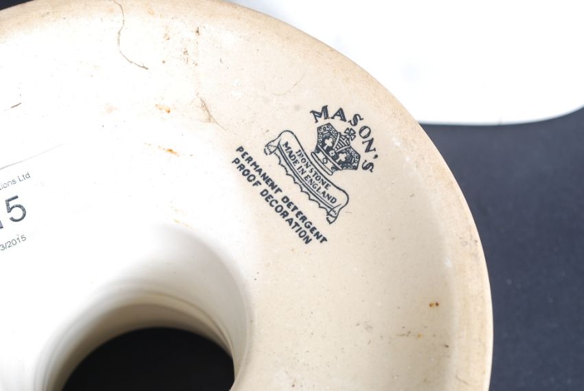 A vintage ceramic Ham Stand by Masons along with two Victorian moulds please see images