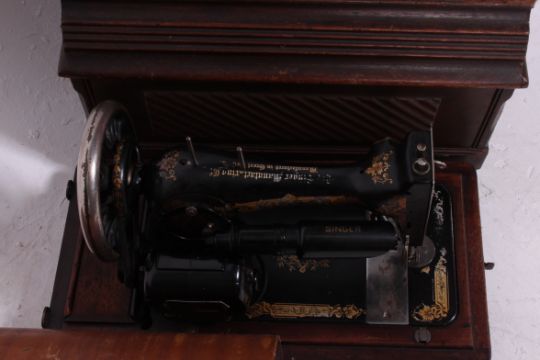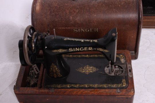 A collection of 3 early 20th century Singer sewing machines complete in the original wooden carry cases