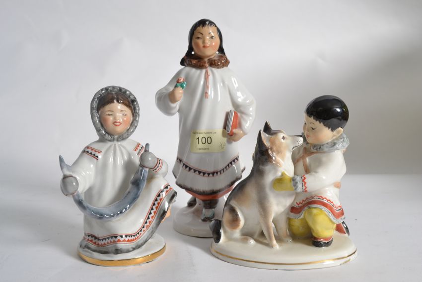 A set of 3x original USSR Inuit / Eskimo china figurines. Measures: 20cms tall.