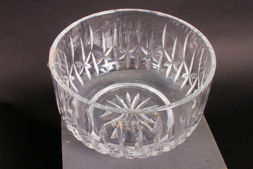A Waterford cut glass crystal bowl complete with the box ( see illustration ). Measures: 12cms H 20cms diameter.