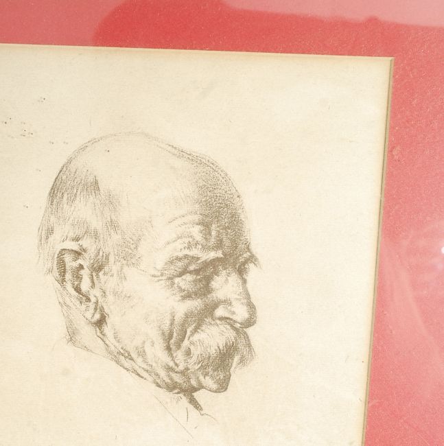 A framed and glazed pencil sketch portrait study / studies of elderly gentleman