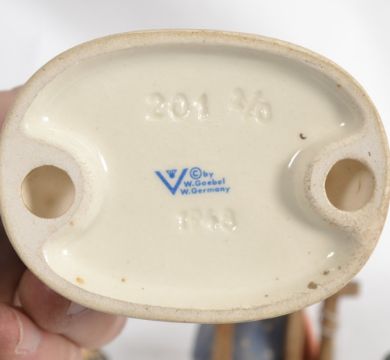A collection of four vintage German Goebels figurines, each with the Goebels mark to base