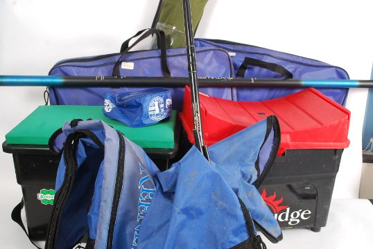An excellent collection of fishing equipment to include tackle, reels, rods, equipment, rod bags, rests and other items etc