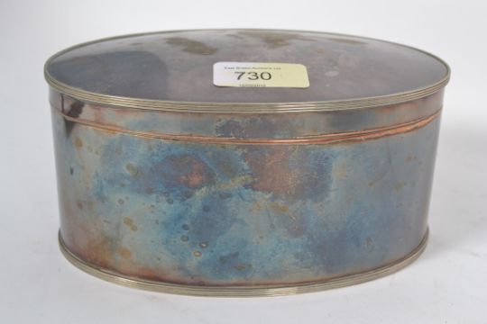 An early 20th century silver plate oval ladies vanity box. Of oval form with ribbed borders having a plain, open interior