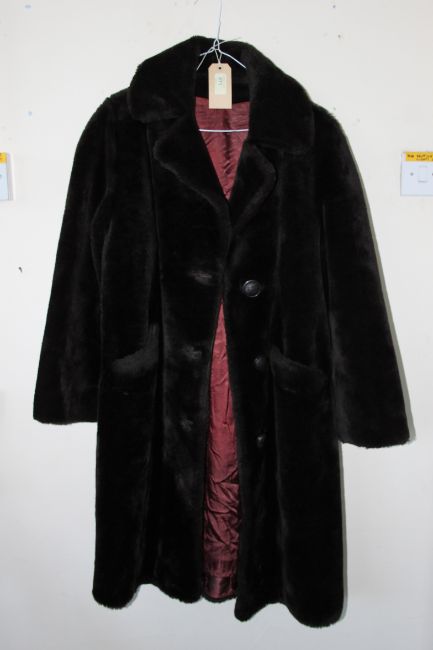 2 mid 20th century ladies vintage faux fur coats having lined interiors, circa 1950's ( see illustration )