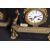 An early 19th century French ormulu gilt metal and slate 3 piece clock garniture by Honoré Pons being stamped to the inside Medaille D'or Pons 1827. The 8 day movement striking on a bell with fabulous enamel face with glass door. Above a gilt spelter figurine of a country gent on naturalistic plinth with lizard. Complete with the 2 tazza garnitures. 2 plints are 23cms high x / main clock 50cms high