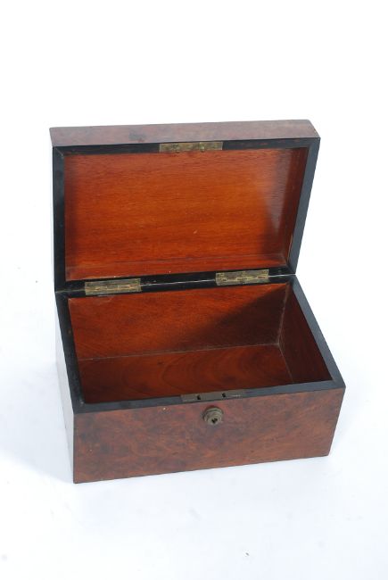 A good 19th century walnut work box having hinged lid with inset Bramah lock to the front