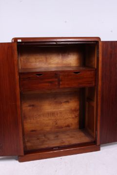 A 1930's Art Deco mahogany Compactom / Compactum gentlemans bachelors wardrobe. Raised on plinth base with appointed interior having drawers to the centre. Measures: 151cms x 107cms x 53cms.