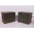 2 Industrial / Military WWII metal food storage trunks complete with original labels, dated 1943 with crows foot markings. Measures: 46cms x 53cms x 40cms.