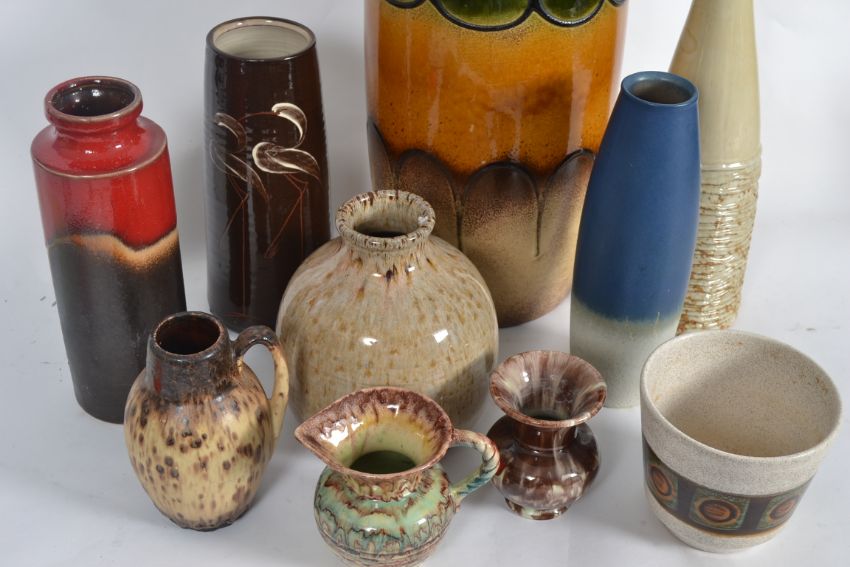 A collection of 1970's West German and similar pottery vases to include Fat Lava style and others etc. Measures: 48cms tall.