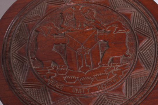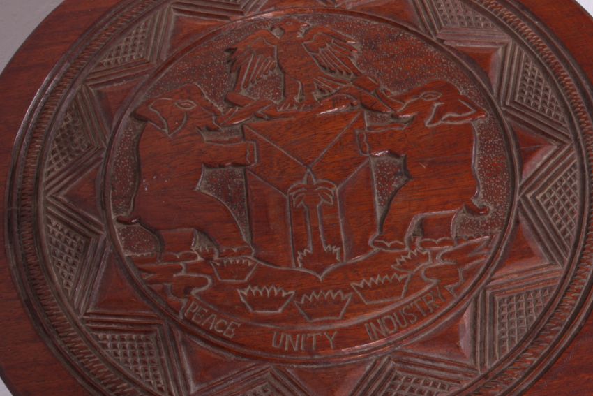 A Queen Anne walnut coffee / occasional / lamp table being raised on cabriole legs together with a hardwood carved coffee table. Measures: 43cms x 56cms