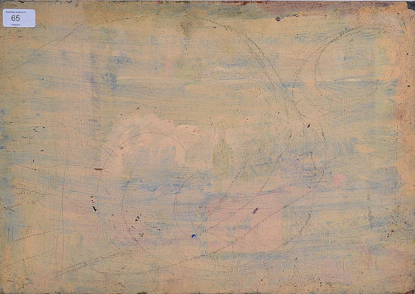 Audrey Lewis Hopkins ( 1914 - 2011) A stunning untitled oil on canvas on board study painting of an abstract scene ( white and pencil curves being unsigned having inscription and sketch to verso. Measures 50 x 35.5 cms Cost to post UK on a tracked and recorded service £15.99+ VAT Cost to Post Ireland, France & Germany £35.00 Other locations, please enquire