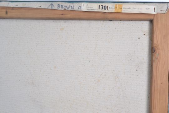 Audrey Lewis Hopkins ( 1914 - 2011) A stunning mid 20th century oil on canvas painting from her Hard Edge period entitled ' Brown on Blue 1967 ' Signed & inscription to verso set within aluminium frame. Measures 63 x 76cms Cost to post UK on a tracked and recorded service £19.99+ VAT Cost to Post Ireland, France & Germany £45.00 Other locations, please enquire