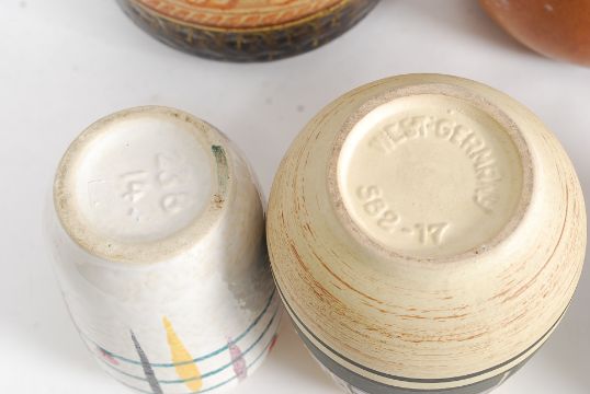 Five pieces of West German fat lava vases to include Bay and others. The tallest being 40cm