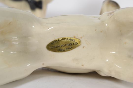 A collection of 3x continental porcelain figures of dogs - one by Coopercraft. Measures: 23cms.