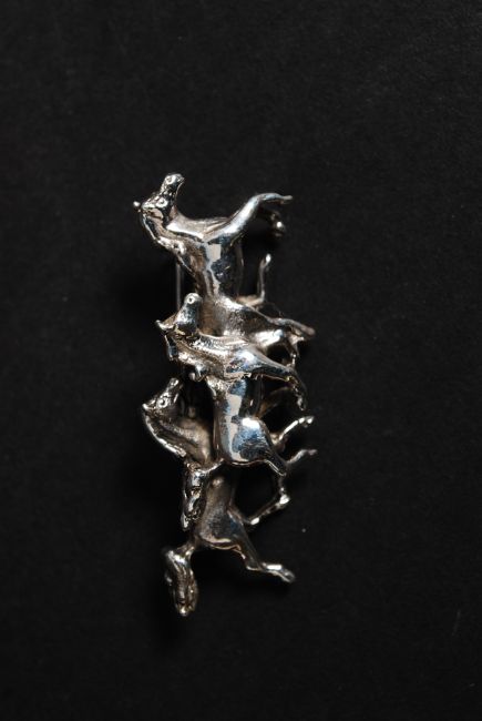 A 20th century white metal (stamped 925 silver ) brooch depicting three horses at a gallop