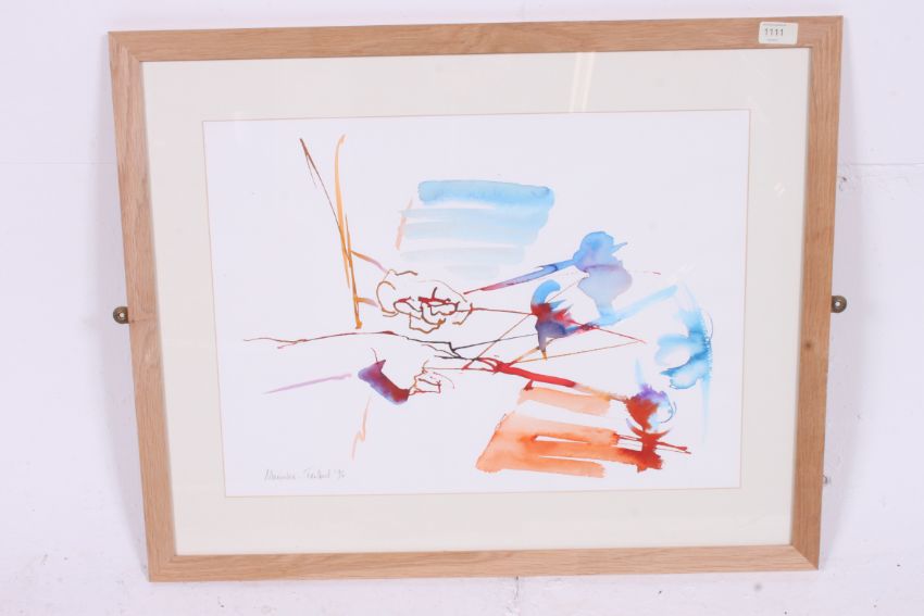 A 20th century Abstract watercolour painting, signed to the lower corner. Framed and glazed. Measures: 40cms x 55cms.