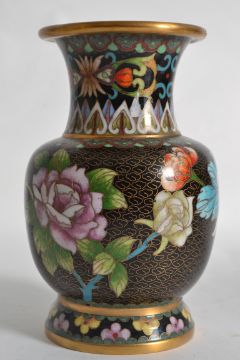 A 20th century Chinese oriental enamel on copper vase, painted with floral decoration. Measures: 38cms wide.