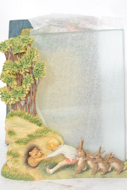A collection of 4x Border Fine Arts Winnie The Pooh ceramic and glass photograph frames, one in original box.