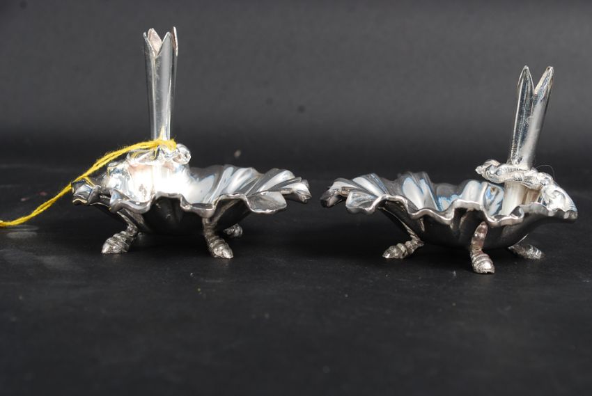A pair of silver plated table salts