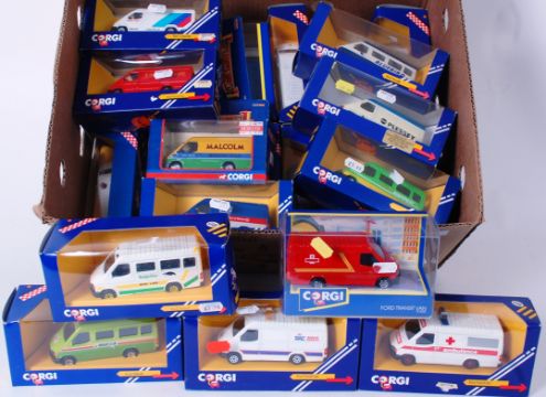 CORGI; A collection of Corgi diecast advertising Transit vans, each within the original display boxes.