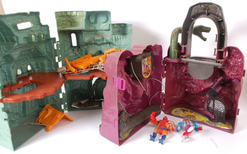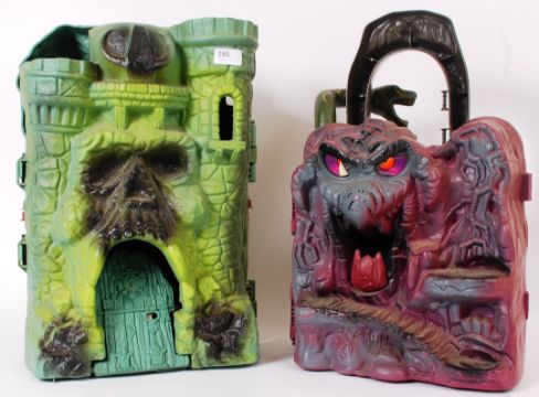 MASTERS OF THE UNIVERSE; Castle Grayskull and Snake Mountain original Mattel Masters Of The Universe playsets, both with loose accessories and 2x assorted action figures.