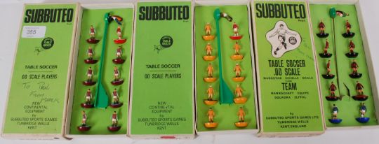 SUBBUTEO; A collection of 3x vintage Subbuteo football teams - box numbers being; 7, 102 and the final unmarked. Each within the original green cardboard boxes