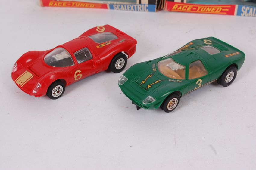 SCALEXTRIC; 2x vintage Scalextric ' Race Tuned ' boxed cars; C16 Ferrari & C15 Ford Mirage. Both with their original boxes.