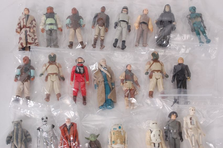 STAR WARS; A collection of approx 30 vintage Star Wars action figures to include; Obi Wan, Bib Fortuna with cape, Yoda, Leia, R2D2, Han Solo and others.