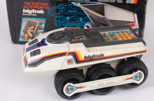 BIG TRAK; An original vintage MB Electronics Big Trak (in original box) along with the Transporter unit, also within the original box.
