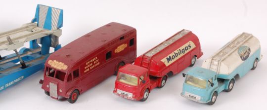 DIECAST; A good collection of vintage Corgi & Dinky diecast trucks - comprising of; Corgi Major Milk Tanker, Corgi Major Mobilgas, Corgi Car Transporter, Dinky Horse Box and Dinky Pullmore 982 car transporter and ramp.