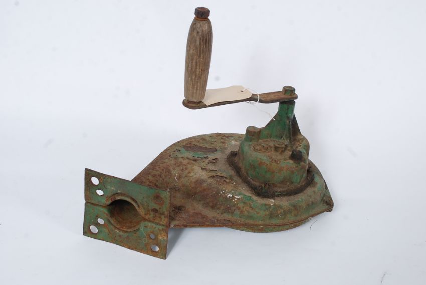 A rare WWII Second world war Nazi occupied French air raid siren cast with Nazi Swastika to the side having wooden handle in original green finish