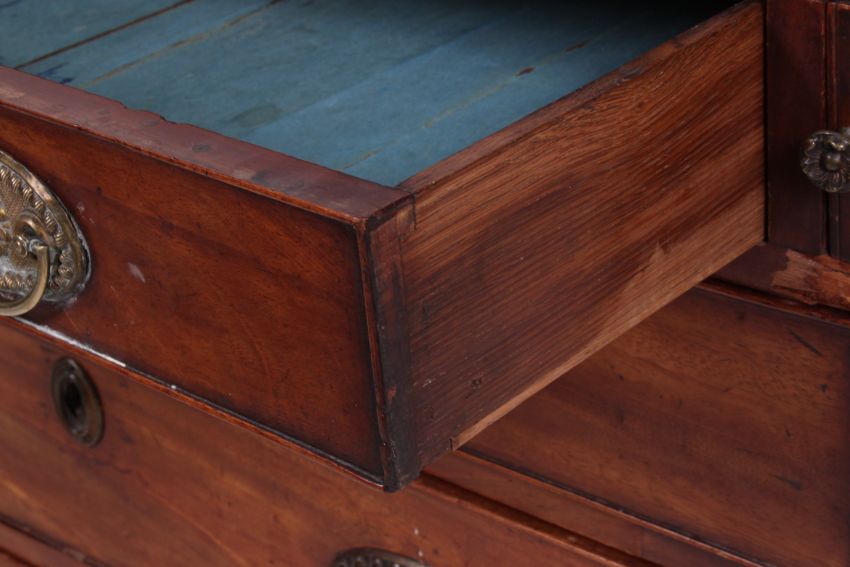 A 19th century Georgian mahogany bureau. Raised on castors with shaped feet having a bank of drawers with a fall front slope having appointed interior within. Measures: 103cms x 92cms x 53cms.