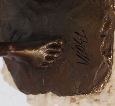 A cold painted / gilded bronze figurine of an entwined couple entitled ' The Lovers ' being raised on a marble plinth base by Ebanu Vidal