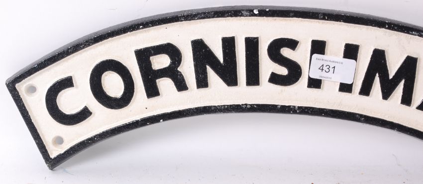 20th century cast iron Cornishman railway train reproduction plaque.