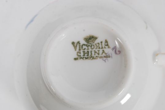 A decorative 20th century vintage Staffordshire part tea service in a chintz Bluebell pattern by Victoria china