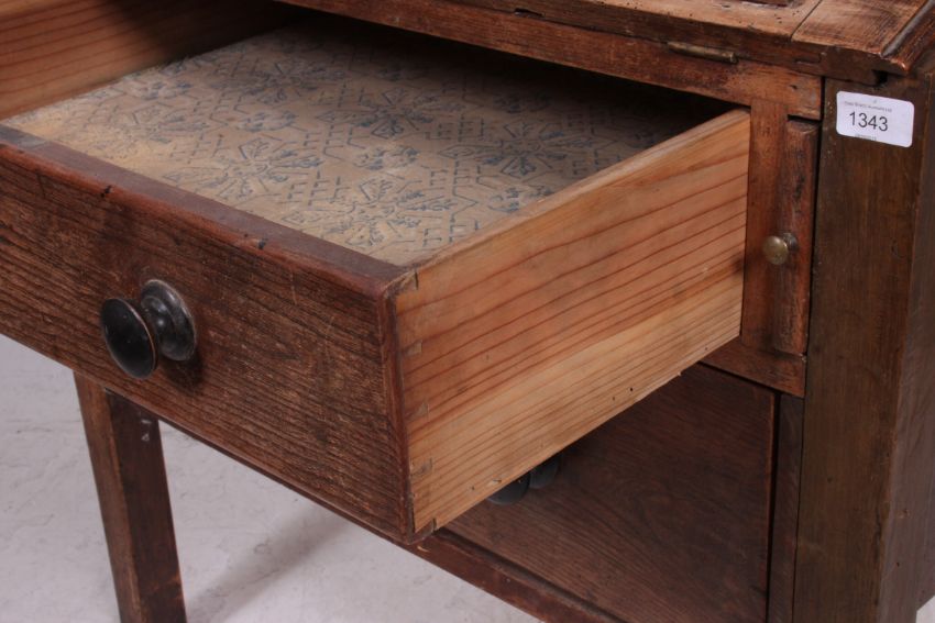 A 19th century country elm wood Estate bureau bookcase. Raised on turned supports with hinged desk top having bookcase cabinet atop. The hinged slope having appointed interior set within. 200cm H 80cm W 59cm D