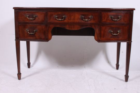 A 19th century Georgian bow front mahogany writing table desk. Raised on square tapered legs with a series of drawers surrounding the kneehole recess. Measures: 77cm H 120cm W 55cm D
