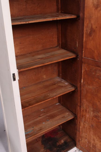 A mid 20th century painted school cupboard having full length panelled door with shelved interior. 170 x 67 x 37