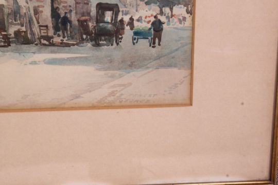 GEORGE, ERNEST (Sir) 1839 - 1922; Two watercolour paintings of French town scenes, each framed and glazed, signed to corner. 35 x 25