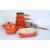 An excellent collection of new and un-used Le Crueset cooking wares in orange to include dishes, saucepans, frying pans etc