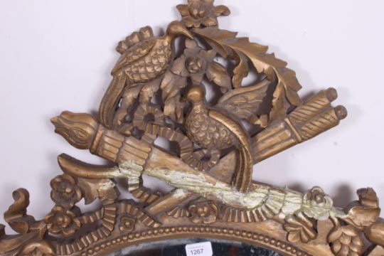 A 19th century Victorian Adams revival wall mirror having circular oval swag mirror with pierced and scrolled mounts over bottom rail