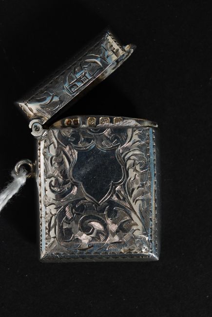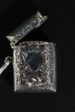 An antique hallmarked silver chase engraved vesta case, being unengraved with hallmarks for Birmingham 1911. Measures:16g.